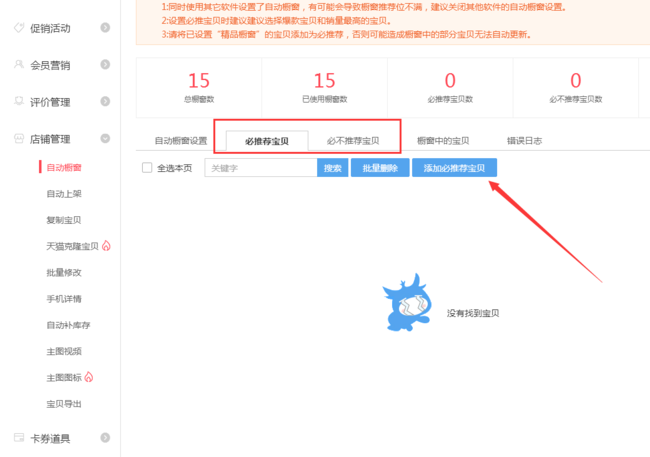 5、也可以根據自己的需求,設置“必推寶貝”與“必不推寶貝”。完成設置后,同樣去櫥窗中的寶貝查看設置結果即可~是不是很簡單呢。通過這個簡單科學的設置,就能獲得額外的流量。希望這個方法能夠真真正正的幫助到大家,為大家帶來切實的便利~