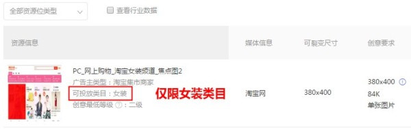 舉例:A店鋪同時經營女裝和手表;某資源位僅限推廣女裝類目。