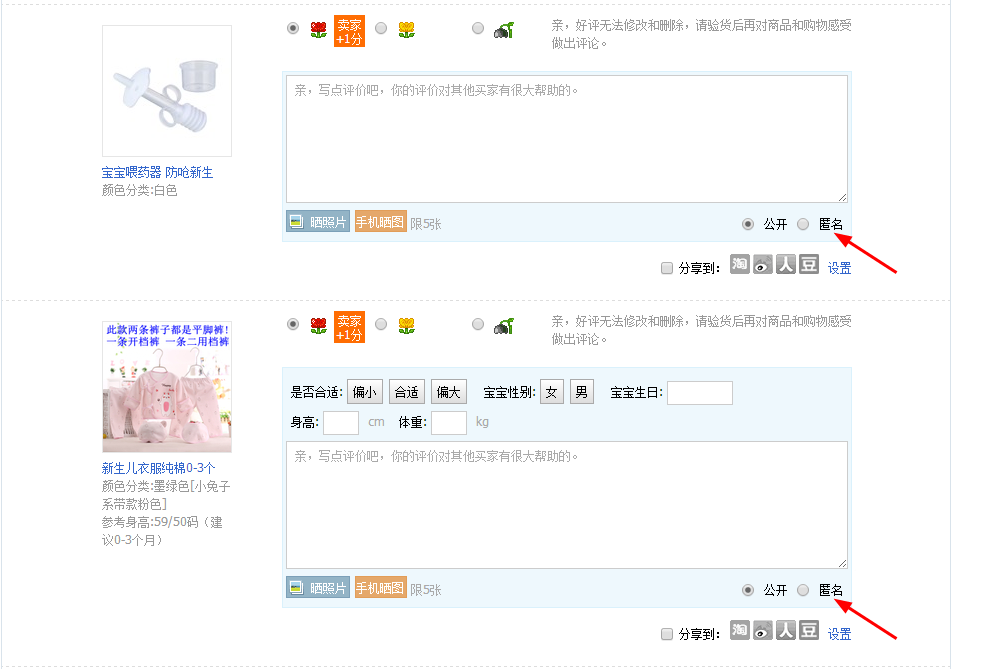 6、不管是在哪里評價都一樣,想要匿名只要在評價的時候注意看底部是否有匿名評價,有的話就勾選,就可以保護你的隱私咯。
