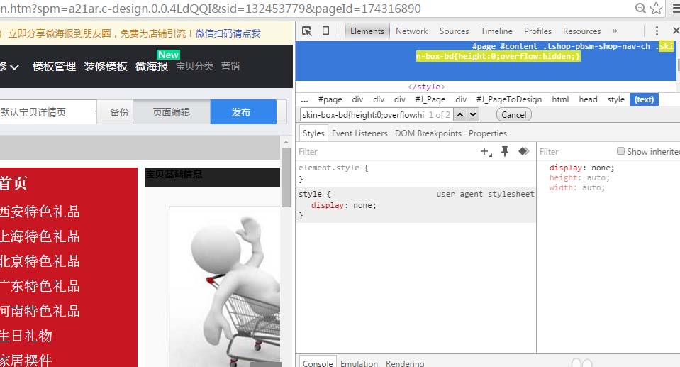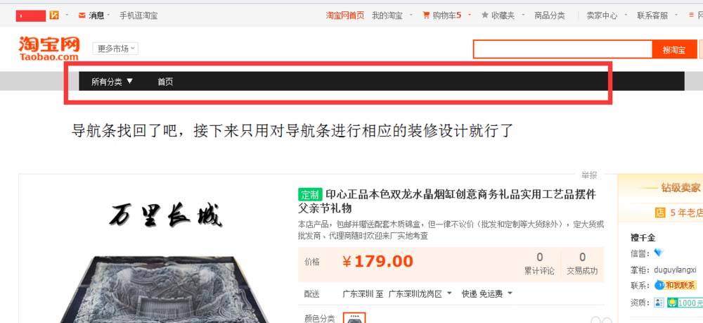 人們在網店裝修時會用到各類裝修代碼,用得好會讓店鋪更精美。有部分賣家為了追求首頁的完美,就將店鋪的默認導航條用代碼隱藏了,但卻不知一但隱藏,在其它頁而也是不再會有導航條了的,然這時要怎樣才能找回呢?