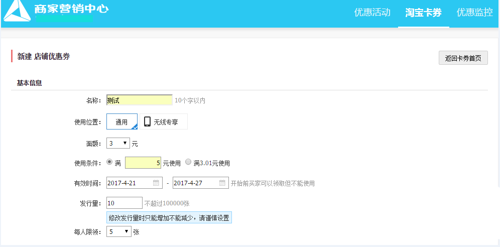 說完了優(yōu)惠券的分類,下面就和朋友們說一下,如何設(shè)置優(yōu)惠券。