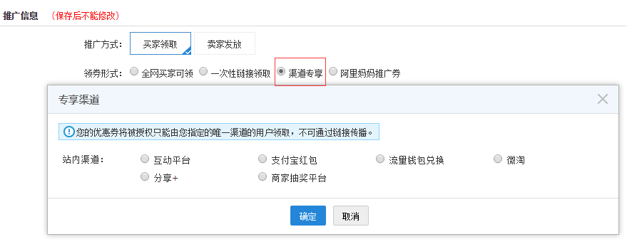 該優(yōu)惠券的使用場景互動性更強(qiáng),渠道可控,方便查看相對應(yīng)的平臺優(yōu)惠券的數(shù)據(jù)情況及用戶情況。在渠道專享優(yōu)惠券中可以直接選擇站內(nèi)渠道進(jìn)行設(shè)置,設(shè)置成功后會自動展示到相對應(yīng)的平臺。增強(qiáng)平臺活動的互動性