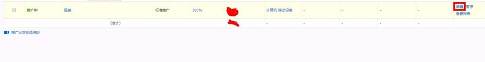 3、鍵入計劃名(計劃名可以隨意填寫)→設置標準推廣計劃→編輯