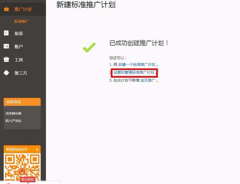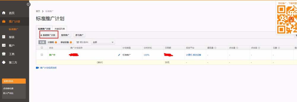 2、進入淘寶直通車→點擊推廣計劃→新建推廣計劃