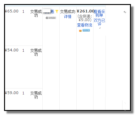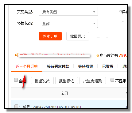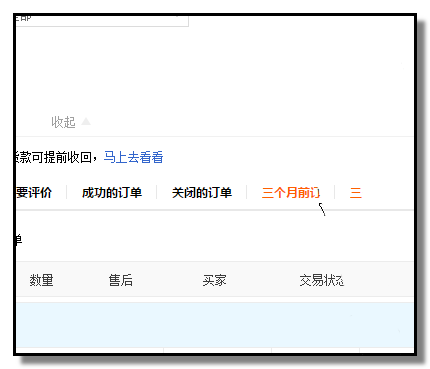 3、“已賣出的寶貝”這個頁面,當前顯示的是“近三個月訂單”的所有訂單(點擊三個月前訂單就顯示三個月前的所有訂單),每一筆訂單顯示著該買家的旺旺號,復制此旺旺號