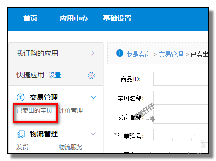 2、在賣家中心這個頁面的左側這里,點擊“已賣出的寶貝”;右邊即顯示出相關內容;