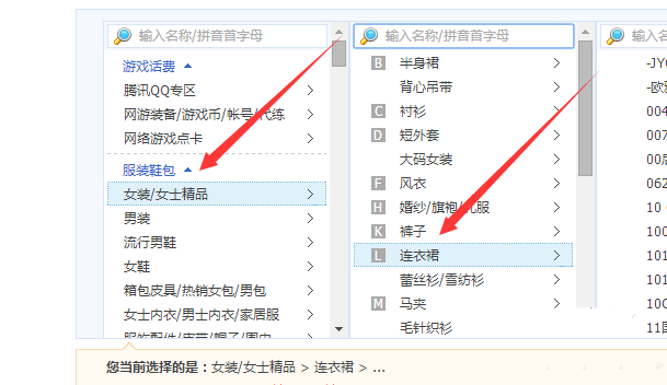 5、點(diǎn)擊發(fā)布寶貝之后,下面我們以女裝女士精品-連衣裙為例,找的相應(yīng)合適的寶貝關(guān)鍵詞。