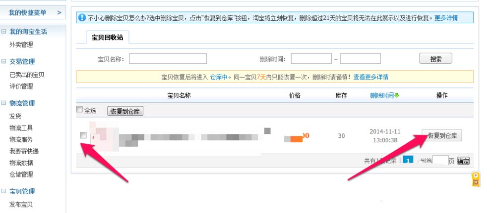 淘寶店鋪刪除的寶貝如何找回,淘寶賣家自己把寶貝不小心刪除了,怎么樣找回恢復寶貝呢。怎么把淘寶刪除的寶貝恢復。