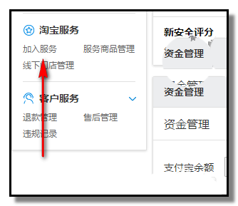 4、淘寶服務下級菜單中,我們看到有:加入服務,這就是我們所需要的入口