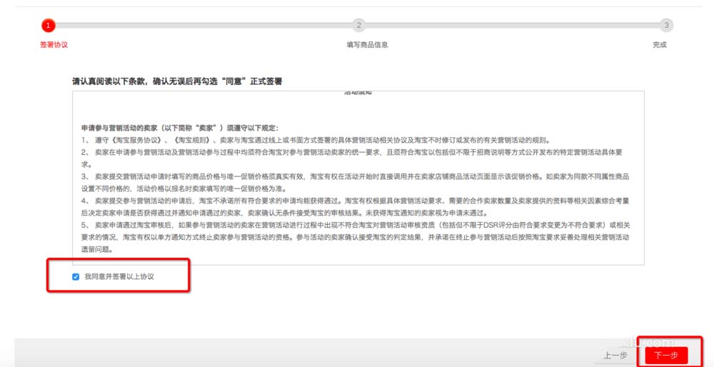 確認協議條款后,根據實際情況勾選并進入下一步。