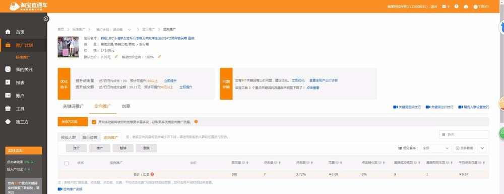 4、經過3、4兩個主要步驟設置后,定制廣告投放已完成,看投放結果在定向推廣即可知道大概。