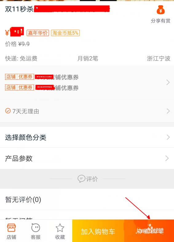 5、打開秒殺的產(chǎn)品頁面,點擊購買試試,如下圖
