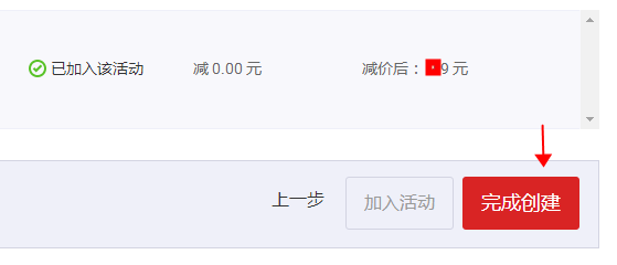 4、點擊完成創(chuàng)建。接下來,我們進入手機端來測試一下,到底是不是只能購買一件呢?