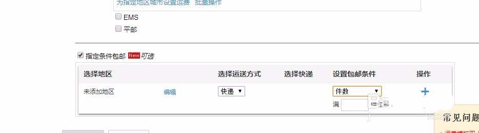 6、在“可設定指定條件包郵”中,可根據金額,例如滿199包郵,條件等信息設置運費;