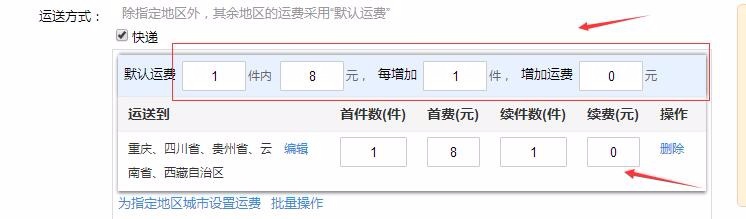 5、若設置不同的地區 運費不同,在運送到地區,點擊“編輯”,根據自己的情況設置不同的地區的運費是多少,也可根據件數調整,沒增加一件,運費增加多少錢