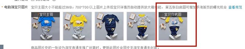 4、寶貝主圖一般供應(yīng)商都是設(shè)置好的,我們只有適當(dāng)調(diào)整一下就可以。記住了,第五張是白底圖,在手淘上能增加曝光機(jī)會(huì)呢,如圖所示。
