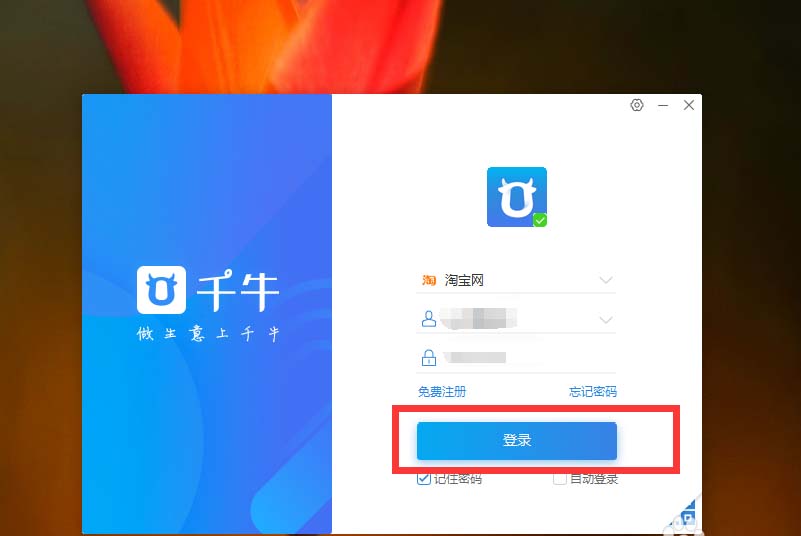 1、我們雙擊打開千牛,輸入賬號和密碼,點擊登錄;