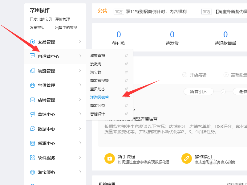 2.進入首頁,選擇自運營中心--洋淘買家秀;