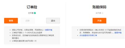 4、進入后可以看到訂單險和賬期保障,分別有管理和退出等操作,根據需要操作。