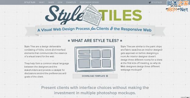 Style Tiles 是一個由字體、色彩和界面元素組成的網(wǎng)絡(luò)視覺品牌,它可以幫設(shè)計師和利益相關(guān)者生成他們所需要的視覺語言,并最終交付給客戶。
