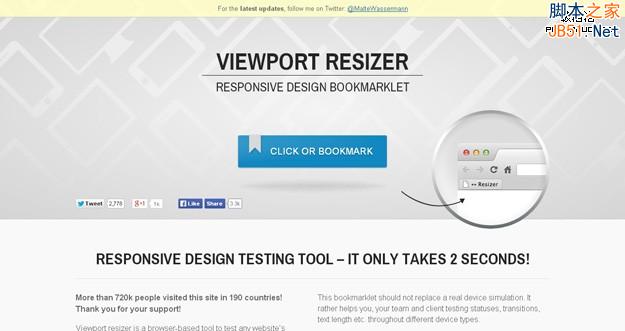 Viewport Resizer 是一個基于瀏覽器的工具,能幫你測試任何網(wǎng)站的響應(yīng)問題。你只需要將其保存書簽,然后去需要測試的網(wǎng)站,點擊書簽就可以開始測試了。