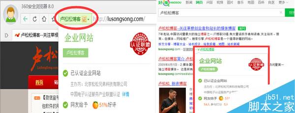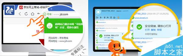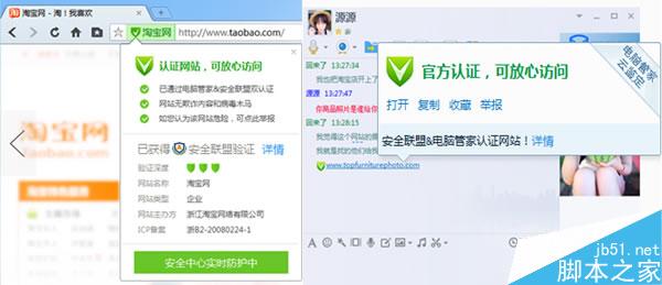 4. 用戶終端展示(推薦):這種方式就是在用戶終端如:瀏覽器、聊天工具、安全軟件等展示認證標識,這種展現的效果要好一些。