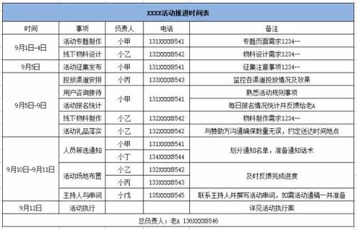 第二步:制作活動推進時間表,推進準備工作