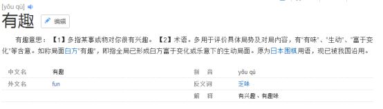 傳統教育對有趣也很有誤導性。百度一下有趣兩個字,結果如下: