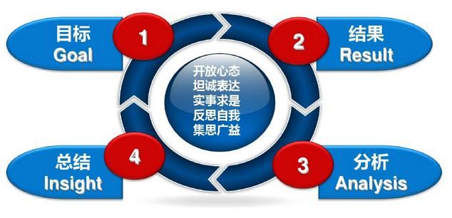 第一個步驟—回顧目標:當初的目的或期望是什么; 第二個步驟—評估結果:和原定目標相比有哪些亮點和不足; 第三個步驟—分析原因:事情成功和失敗的根本原因,包括主觀和客觀兩方面; 第四個步驟—總結規律:通過以上的分析找到事物更有效、更符合本質規律的做法,比如需要實施哪些新舉措,需要繼續哪些措施等。