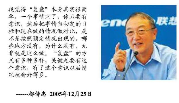 圖片一:聯想柳傳志對復盤方法論的高度認可