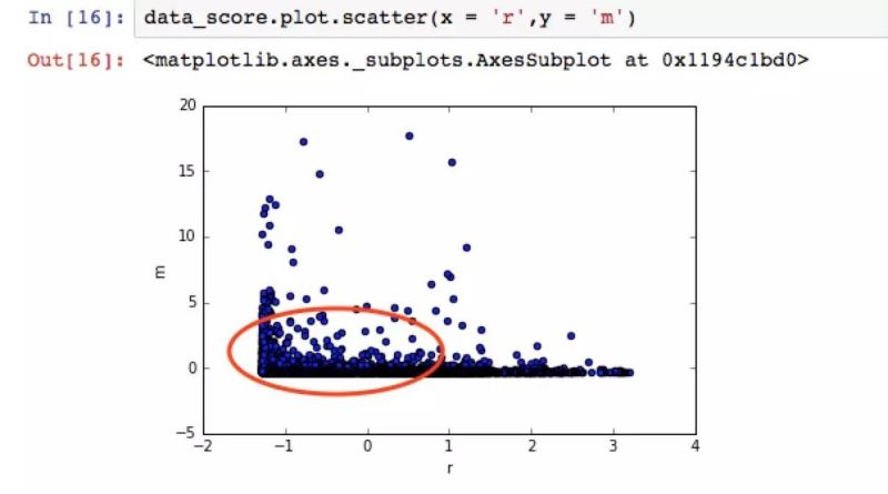 散點圖上暫時看不出用戶分群的規(guī)律,只能初步判斷,大部分的數(shù)據(jù)呈集中趨勢。