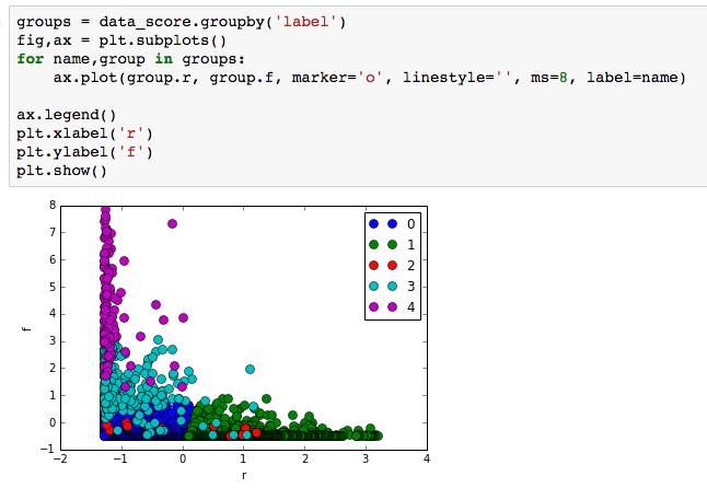 上圖的三列數(shù)據(jù)是經(jīng)過標準化后的用戶消費數(shù)據(jù)。值越接近0,說明離平均水平越近。r值因為是最近一次消費時間,所以值越小,說明時間越接近,值越大,說明消費越久遠。
