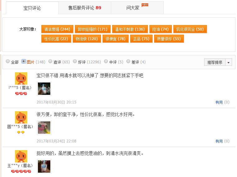對于現在的商品詳情頁,評價模塊可以說是起著主導性的作用,很多用戶一點進商品還沒看商品的詳細介紹就直接打開了評價模塊,仿佛關于商品的一切信息都可以從這里得到。很多時候,用戶會靠著“大家都說好一定就是好”的觀念來購物,這時候把好的評價置頂就顯的很重要,這樣至少讓用戶的第一印象就是好的。