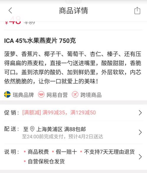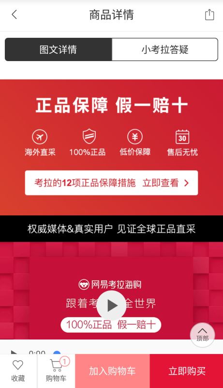 比如網易考拉,它在商品詳情頁的底部會用一整屏的內容來凸顯他們對用戶的承諾:正品保障,假一賠十。非常的簡單粗暴,但又讓人信服。