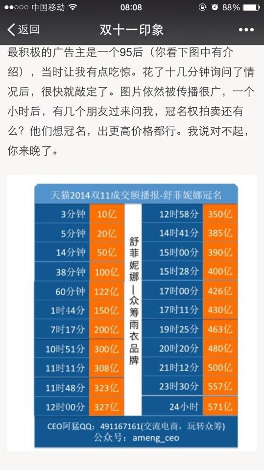 去年鬼腳七的雙11廣告拍賣,就被拍下了7.8W高價,今年居然又被一個95后給拍下7W高價,90后真是要逆天了,不知道是何處高人。但是,在鬼腳七連續兩年蟬聯自媒體雙11當天最高價廣告背后,來看看到底值不值?
