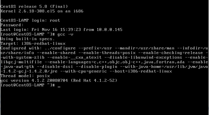用gcc -v 命令檢查安裝時使用的編譯工作是否存在