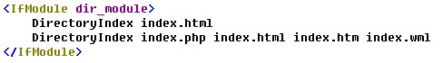 ③、找到這一行:DirectoryIndex index.html,在下面接著寫上DirectoryIndex index.php index.html index.htm index.wml,如圖: