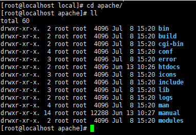 2.將apr-1.5.2.tar.gz、apr-util-1.5.4.tar.gz、pcre-8.37.tar.gz、httpd-2.4.26.tar.gz解壓到/usr/local/目錄下