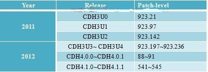 Cloudera以patch level劃分小版本,比如patch level為923.142表示在原生態Apache Hadoop0.20.2基礎上添加了1065個patch(這些patch是各個公司或者個人貢獻的,在Hadoopjira上均有記錄),其中923個是最后一個beta版本添加的patch,而142個是穩定版發行后新添加的patch。由此可見,patchlevel越高,功能越完備且解決的bug越多。