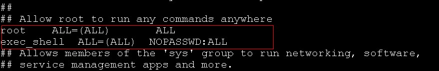 visudo 找到這個地方,添加your_exec_user,并且設置無需密碼