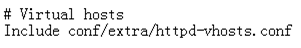 查找 httpd-vhosts 定位到上圖位置,將前面的 #號去掉,#號表示注釋的意思。保存文件。將此處的#號去掉,表明我們開啟了一個輔助性的配置。此輔助配置是一個文件,需要找到此文件進行修改。
