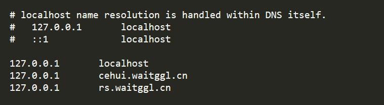 hosts 路徑:C:/Windows/System32/drivers/etc 目錄下,在最底下添加這么一行代碼:127.0.0.1 你的域名,保存并退出。