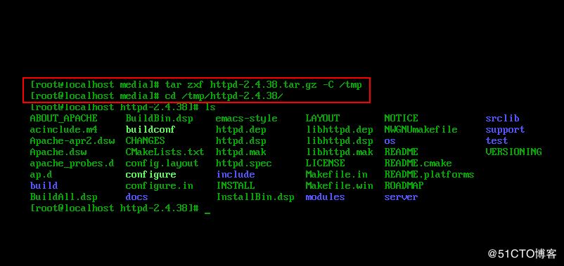 3、將httpd源碼包進行解包,并指定釋放目錄,然后切換到展開后的源碼目錄中: