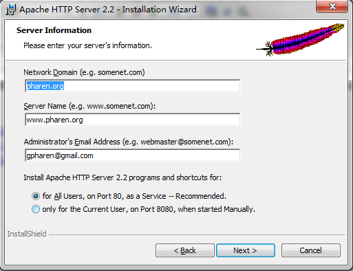 在填Server Infomation時,并沒有特殊規(guī)定,只要輸入的信息符合格式即可
