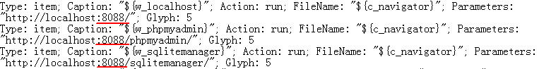 重啟wamp,就可以生效了。但是“Localhost”、“phpMyAdmin”、“SQLiteManager”,你可以點擊打開看到依舊是默認的80端口。找到wamp安裝目錄下的wampmanager.tpl文件,記事本打開: