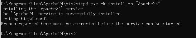 httpd.exe -k install -n "Apache24"