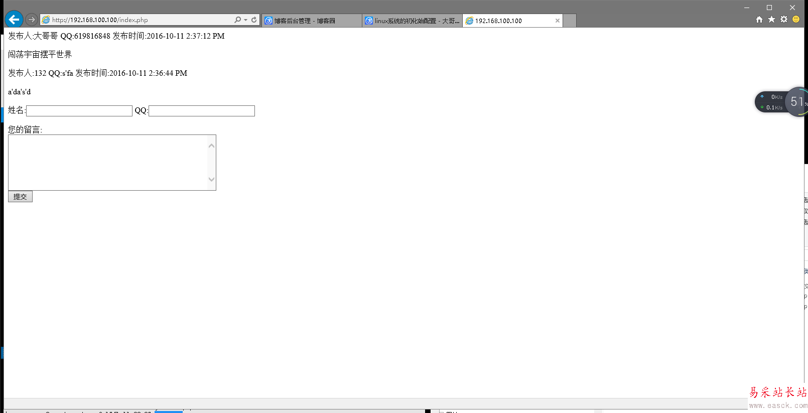 以上所述是小編給大家介紹的linux下使用Apache+php實現留言板功能的網站,希望對大家有所幫助,如果大家有任何疑問請給我留言,小編會及時回復大家的。在此也非常感謝大家對錯新站長站網站的支持!