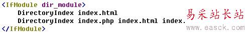 ③、找到這一行:DirectoryIndex index.html,在下面接著寫上DirectoryIndex index.php index.html index.htm index.wml,如圖: