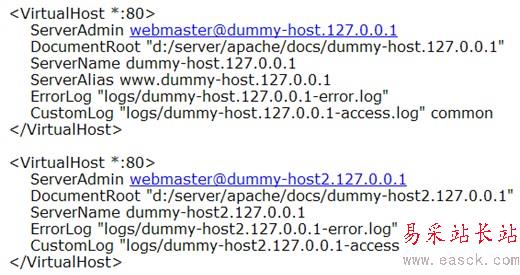 然后,httpd.conf的配置就算完成了,接著配置httpd-vhosts.conf這文件,在apache/conf/extra/文件夾下