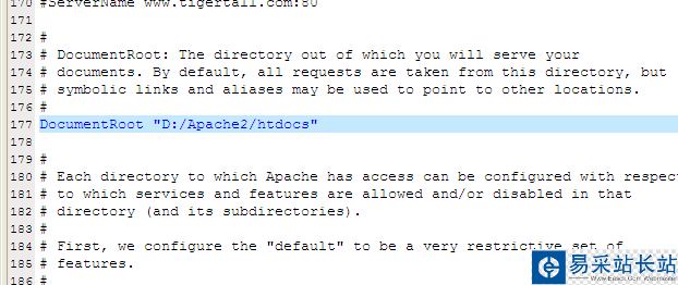 查找關鍵字DocumentRoot,這個是網站根目錄,可以更改為自己的目錄。